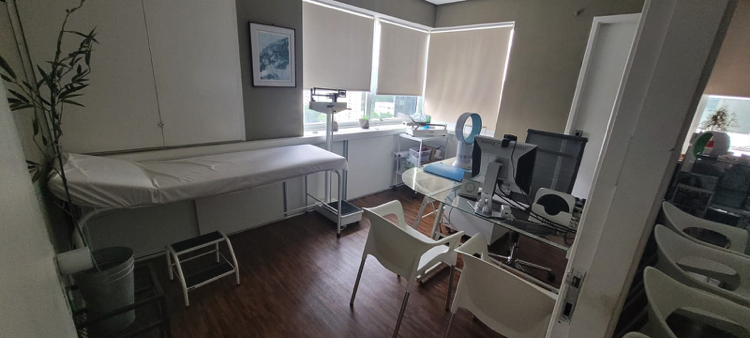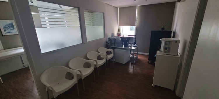 Num espaço confortável, clean, e relaxante, a Clínica está instalada numa área bruta de 30m2, no sexto andar, sendo dotado de um toilette na sala de atendimento médico e outro, na sala de atendimento receptivo.